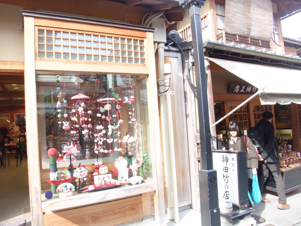 二寧坂には、竹の店、縮緬細工の店、香りの店など日本的な店が並んでおり、とても楽しいです。