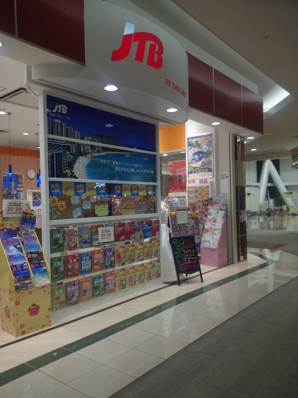 旅行代理店のJTBです。ホテルの手配、JRの切符、航空機のチケットやパック旅行が手配できます。受付は20:30まででなので注意が必要です。インターネットが使えない・どうやって使っていいのか?判らない人は店舗を使うしか仕方が無いわけです。