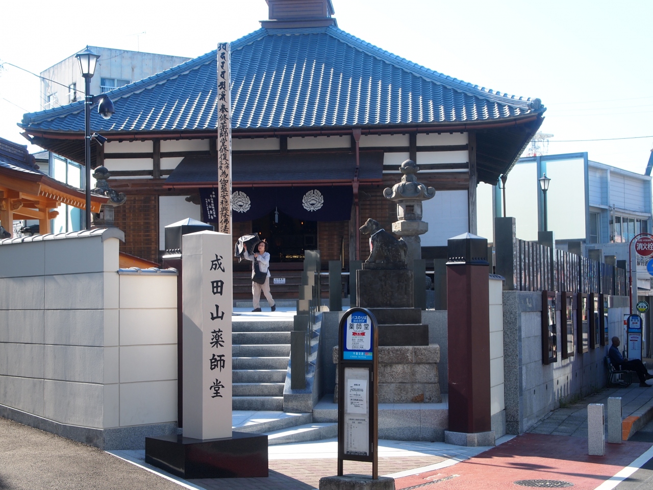 成田山薬師堂は成田山新勝寺の参道の途中の三叉路の左側にある建物です。