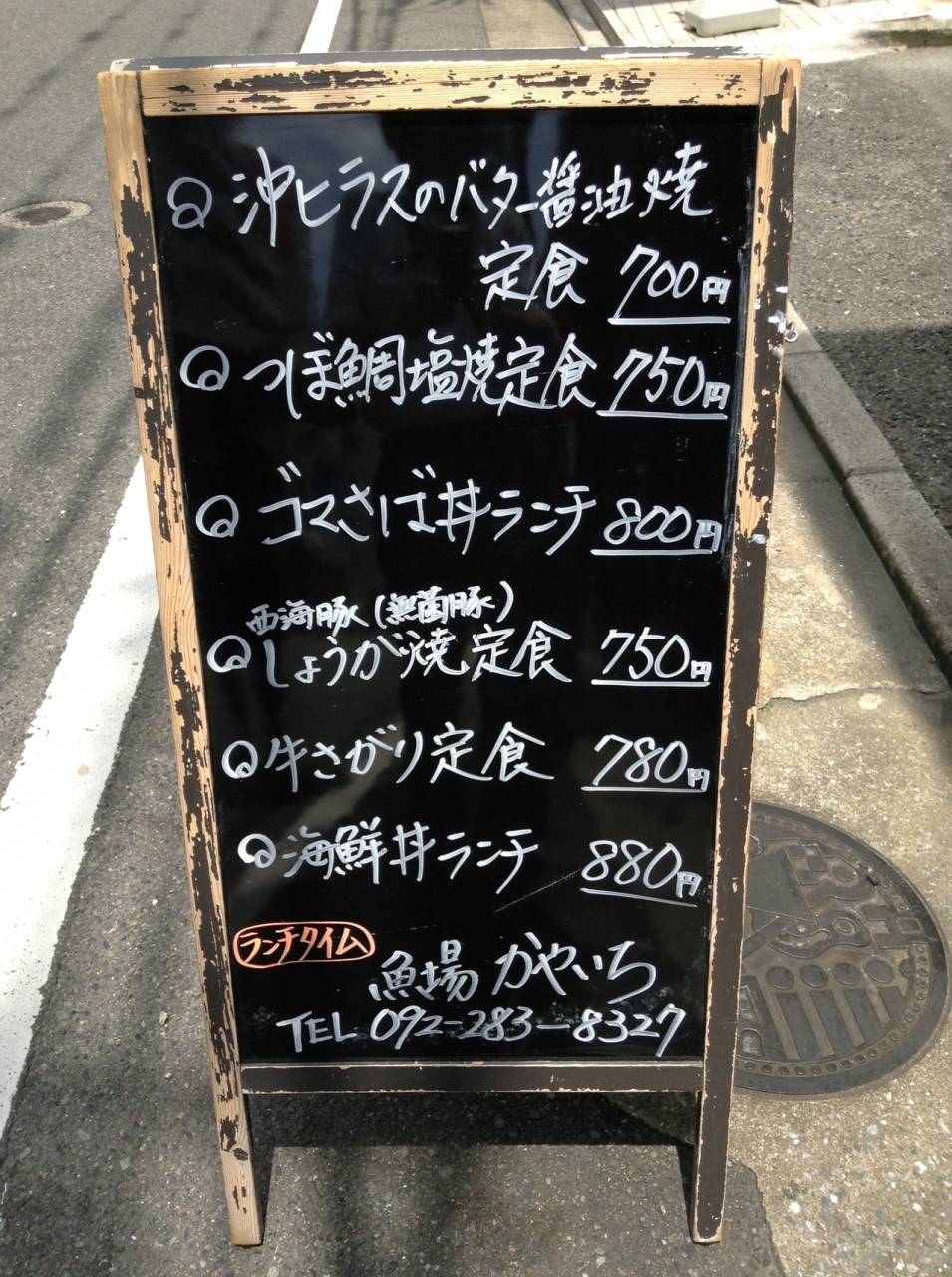 ランチで利用しました。ランチメニューは、胡麻サバ丼や銘柄豚の生姜焼き、焼き魚定食など常時6種類ぐらい用意されています。人気メニューは売り切れも早く、何度かのがしました。