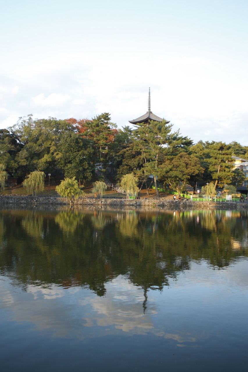 興福寺と一本の道を隔てた所にあり、池の周囲に整備された歩道と、所々にベンチが備えられています。池自体は水が濁っていて見所という訳ではありませんが、池越しに興福寺の五重塔がみえて、とても絵になります。時間があれば、この絵になる風景を眺めてみることをお勧めします、