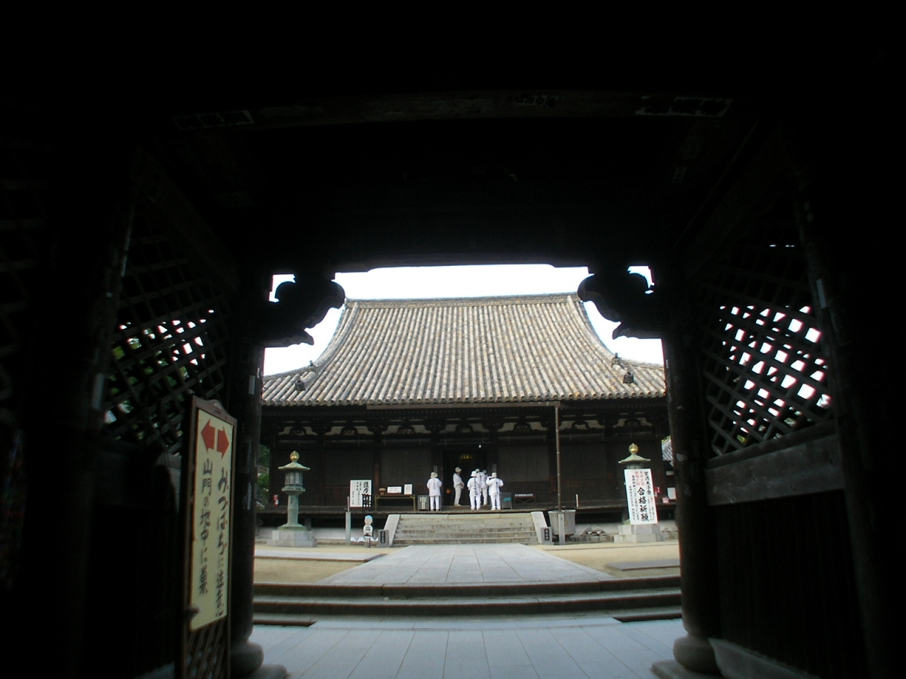 参道の坂道を上ると鎌倉時代の作で国の重要文化財に指定されている二の門の仁王門があります。しばらく坂道を進み、石段を上ると四天王をまつる二層の楼門があり、その先正面に国宝に指定されている本堂があります。本堂は伊予最大のもので見所があります。