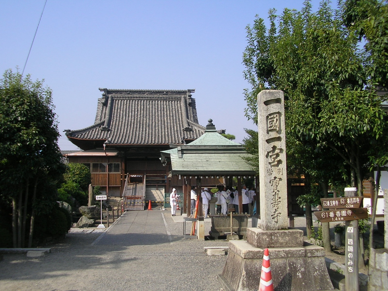 お寺は周囲を住宅で囲まれ、山門の前に四国霊場最古といわれる「一国一宮宝寿寺」と刻んだ古い石標が建っています。門をくぐると正回に本堂、右に大師堂があります。境内は広くないですが、参道の左側には趣のある石庭がみられます。ご本尊の十一面観世音菩薩は安産の観音として信仰を集めており、女性の参拝者が多いそうです。