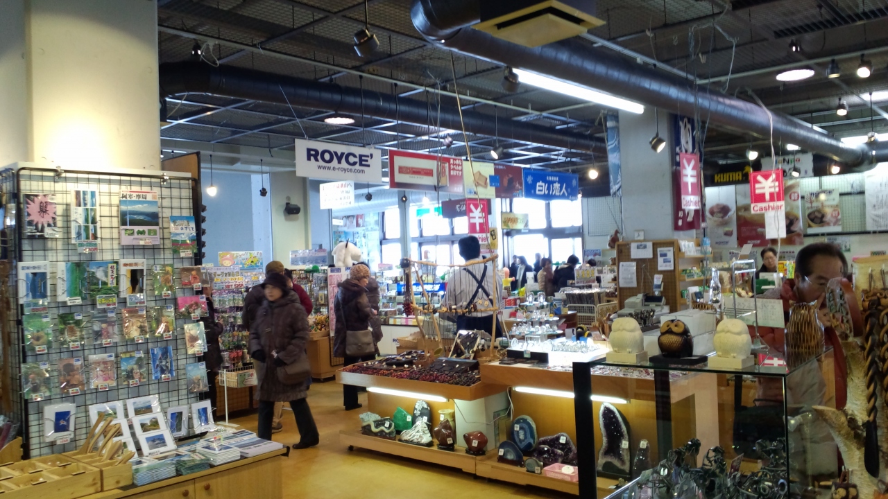 付近、何も無いなか、充実した施設です。特に冬は硫黄山観光で冷えた体(噴気孔のあたりは熱気がありますが、近づきすぎると危険)を温めるのに最適です。各種おみやげを販売しているほか、軽食も食べられます。観光バスが着かないと、人もまばらでがらんとしていました。
