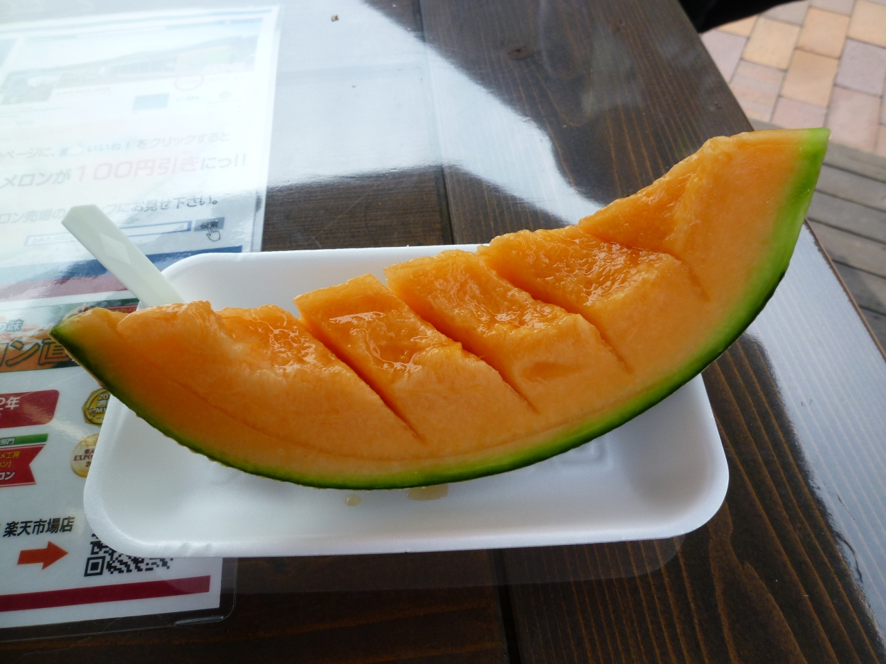 カットメロンは1カット250円で、クーポンをつかうと1個だけ100円になります。