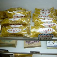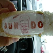 「ジュンドッグ」はフライにした具材を特製ソースにくぐらせ、ご飯で包み、崩れないように圧縮させた棒状の(洋風)おにぎりの一種(海苔などが巻かれない)で紙包装ごと手に持つスタイルで食べます。