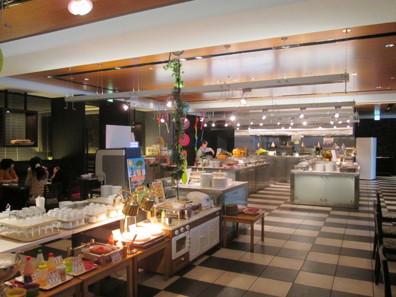 - 入口辺りには高級感がありますが、館内は広めのビュッフェ・レストランって感じです…ただしセンスの良い色使いと清潔感のあるレストランです