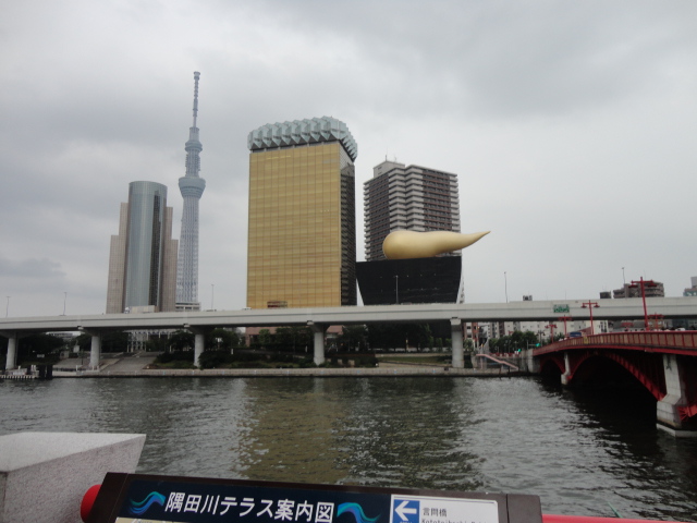 隅田川の西岸からの景色は素晴らしく、スカイツリー、アサヒビール本社ビルなど、隅田川越しに見る光景は、東京を代表するもののひとつと言えます。