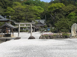 山幸彦・海幸彦伝説の発祥の地だそうです。鳥居が何本かありますが、そのうちいくつかが潮の干満により海から出たり入ったりします。我々が到着した時は、すべて陸上にありましたが、立ち去ろうとする時は2本が海中にありました。