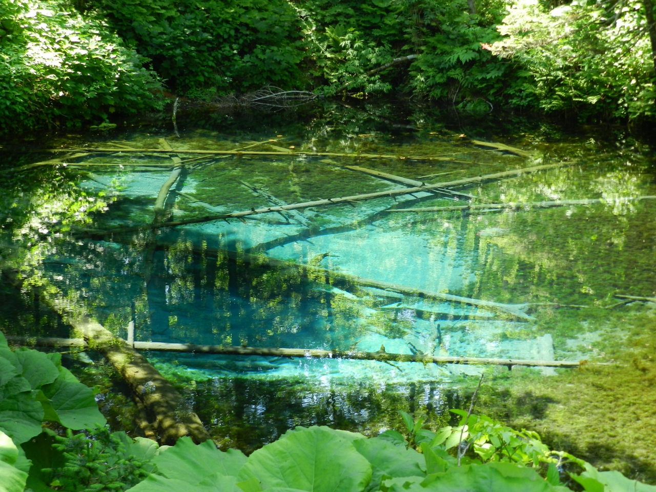 また、水温が年間通して低いために、池の底の倒木が腐らずにそのまま残っています。