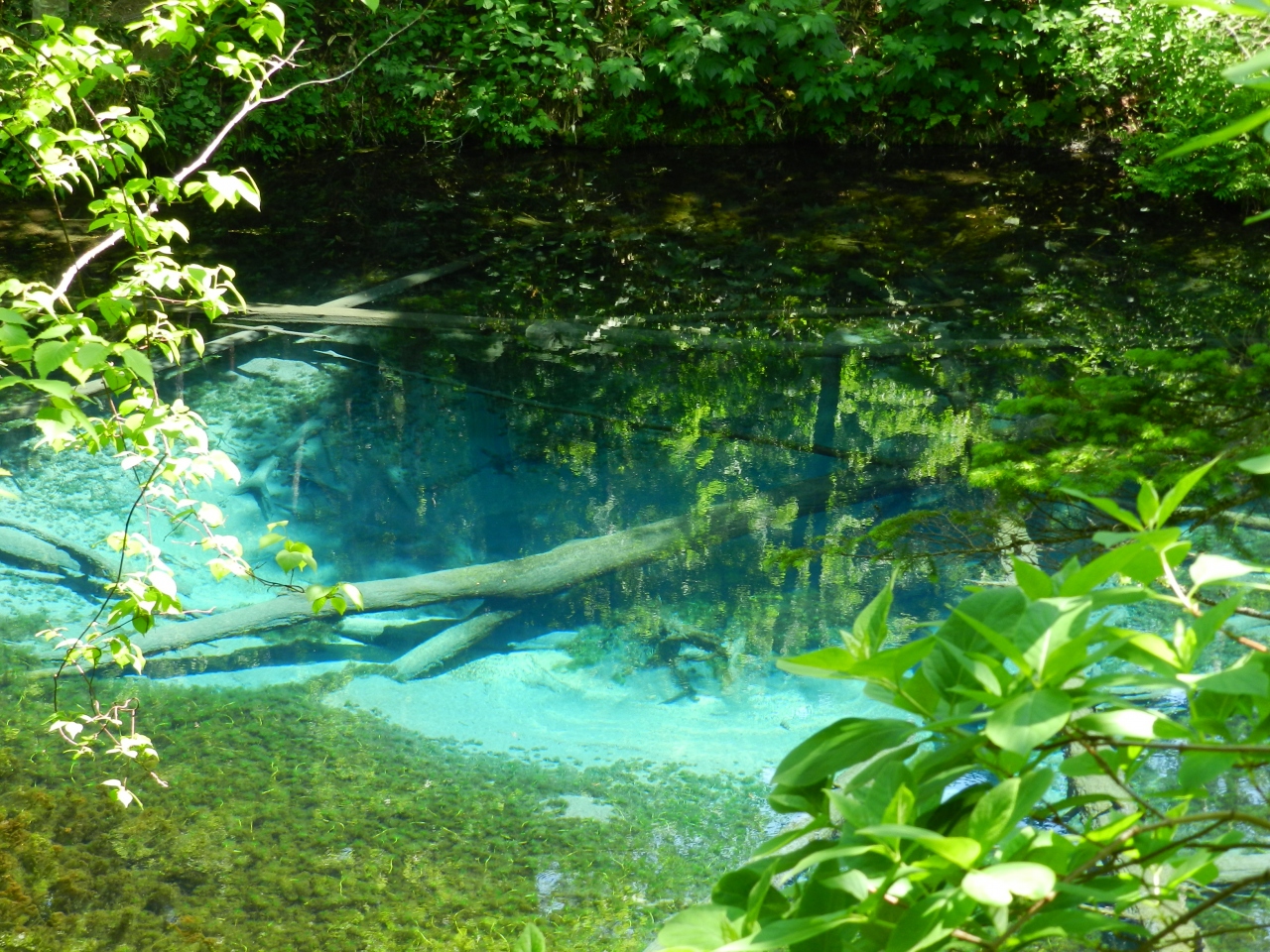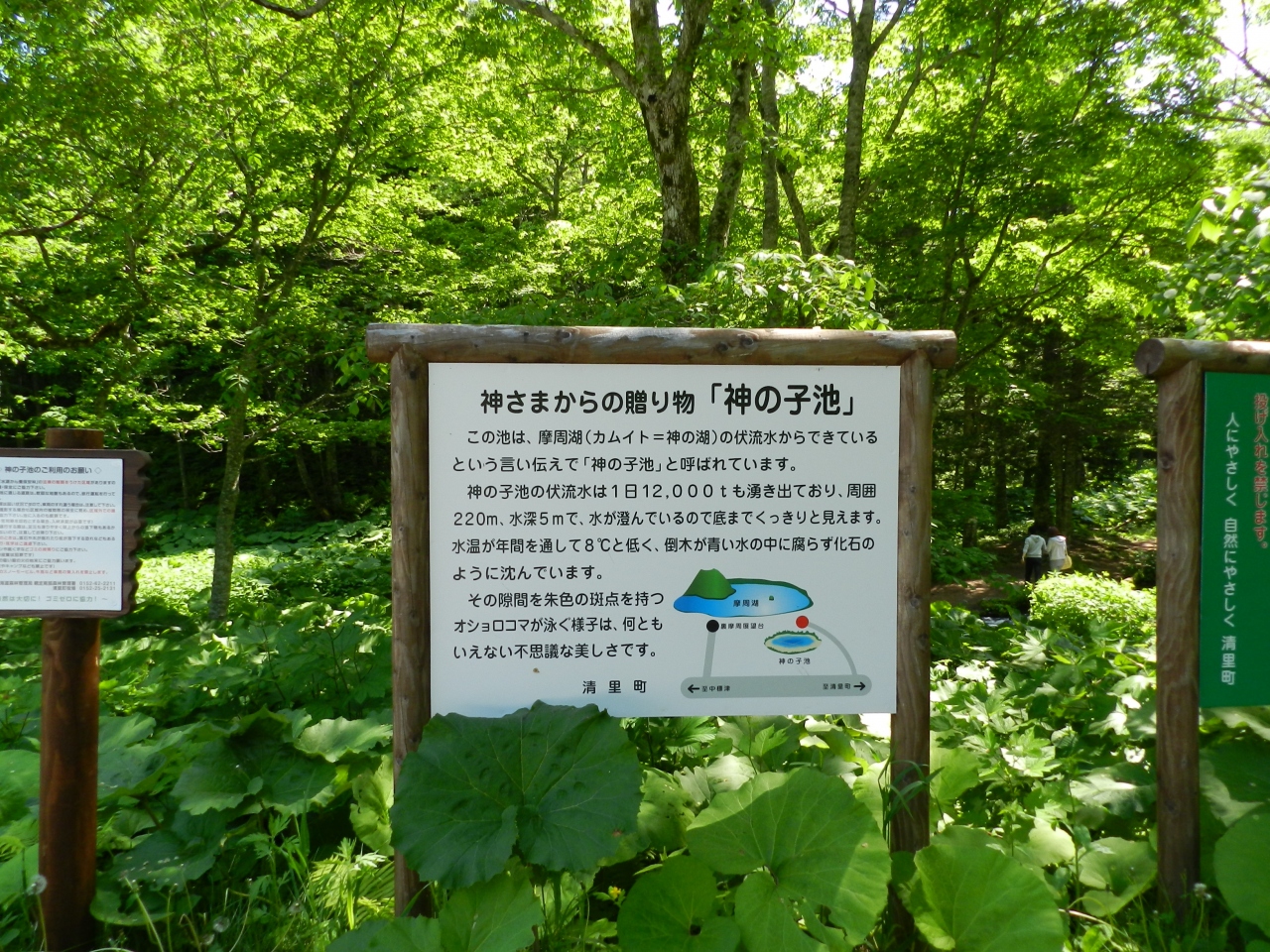 摩周湖から流れ出た伏流水がつくり出したという「神の子池」は、周囲220m・水深5m小さな池ですが、水が澄んでいるので底までくっきりと見えます。