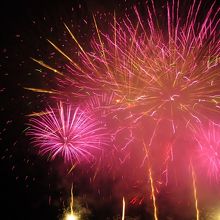 毎年9月の最初に諏訪湖湖上で行われる花火大会です。「競技大会」という名前の通り、全国の花火師(煙火師)が各自考えたテーマに即したプログラムで音楽に合わせて花火を打ち上げるものです。花火の競技性というのは一見わかりにくいのですが、単に花火をたくさん打ち上げるというのではどうもだめみたいで、仕掛けの奇抜さとか技巧の複雑さといった点が採点されるようです。