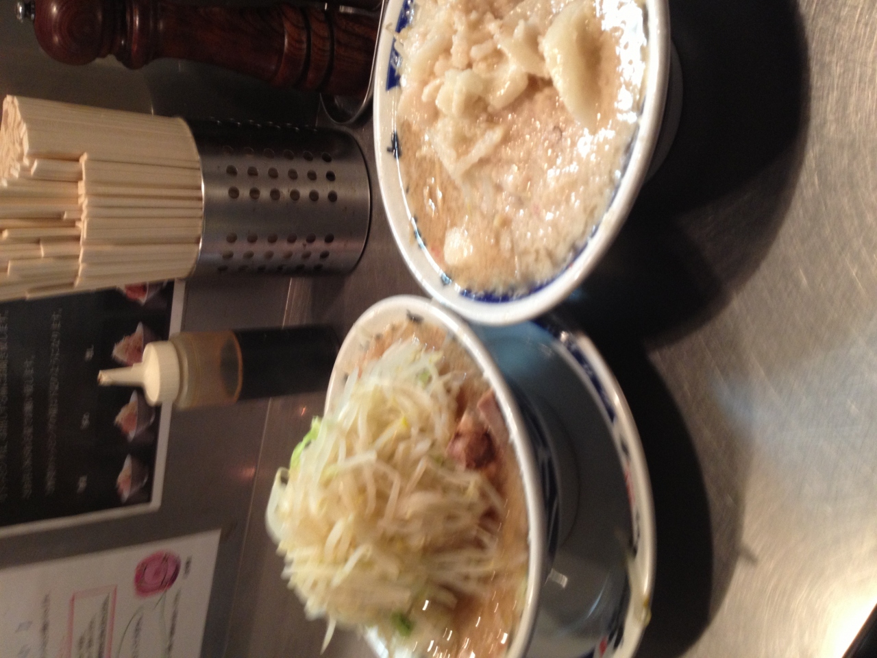 二郎のインスパイアで黄色い看板がその印。ラーメンは普通でも大盛りくらいあり、また野菜はさらに増すことも可能で、他にはアブラやにんにくも増量できます。腹が減ったら満足できます。少し、駅から歩きますがいい運動でした。