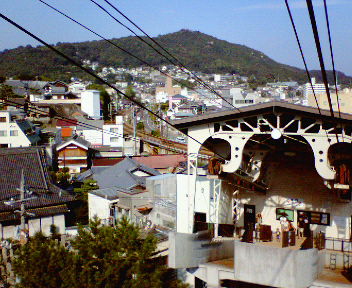 登る途中から瀬戸内海が見渡せるロープウェイ