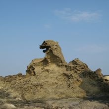 県道から潮瀬崎灯台の方へ200mほど歩くと、ゴジラの横顔がハッキリ見えます。まるで、日本海に向かって吠えているようでした。