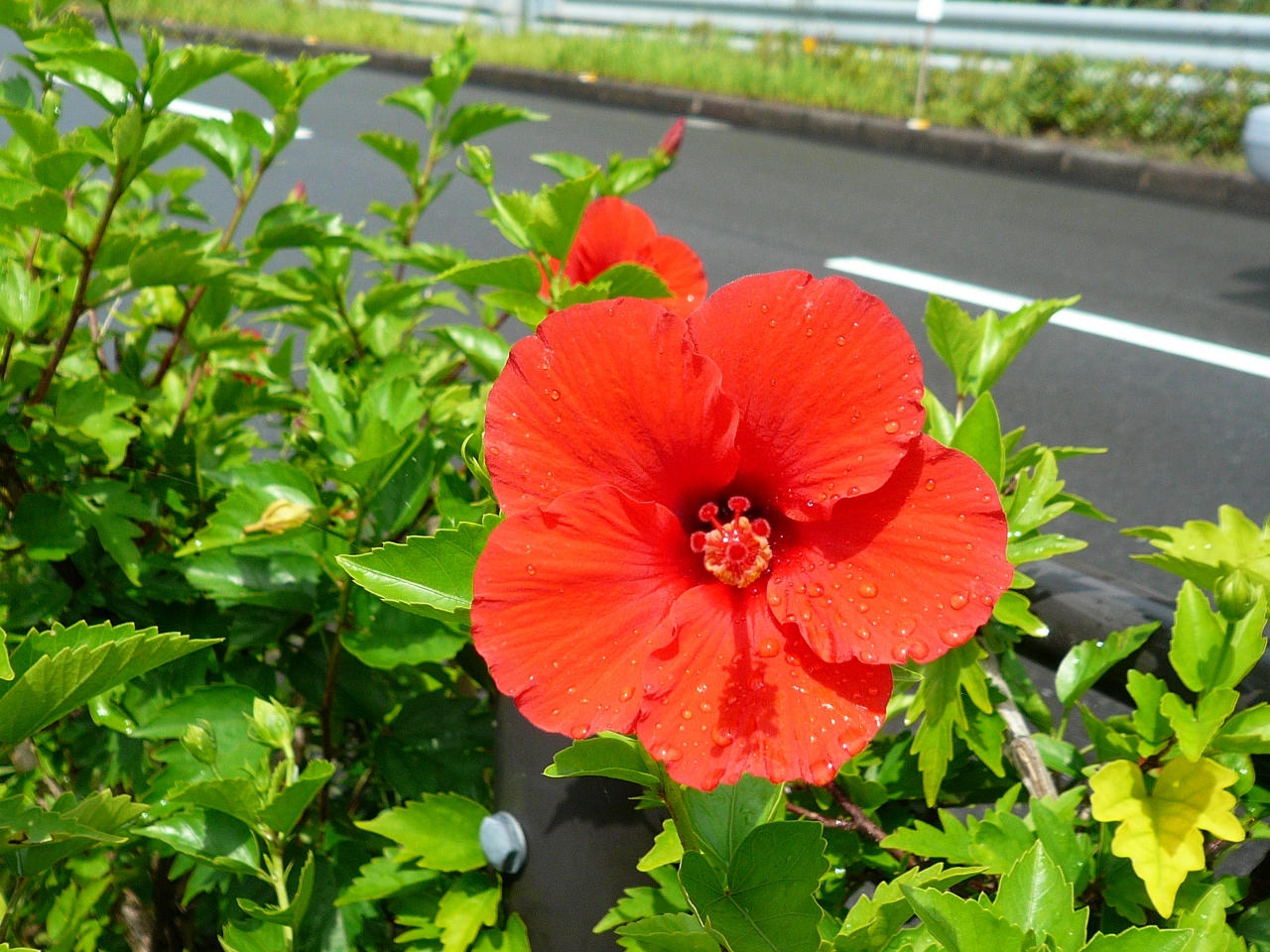 歩道にはハイビスカスの花も咲いていて南国を醸し出します。