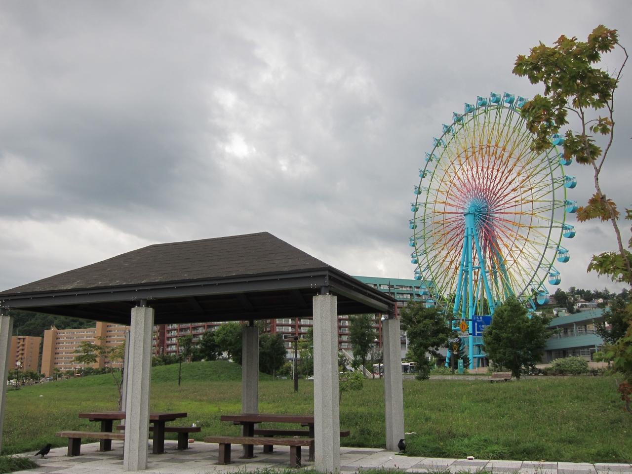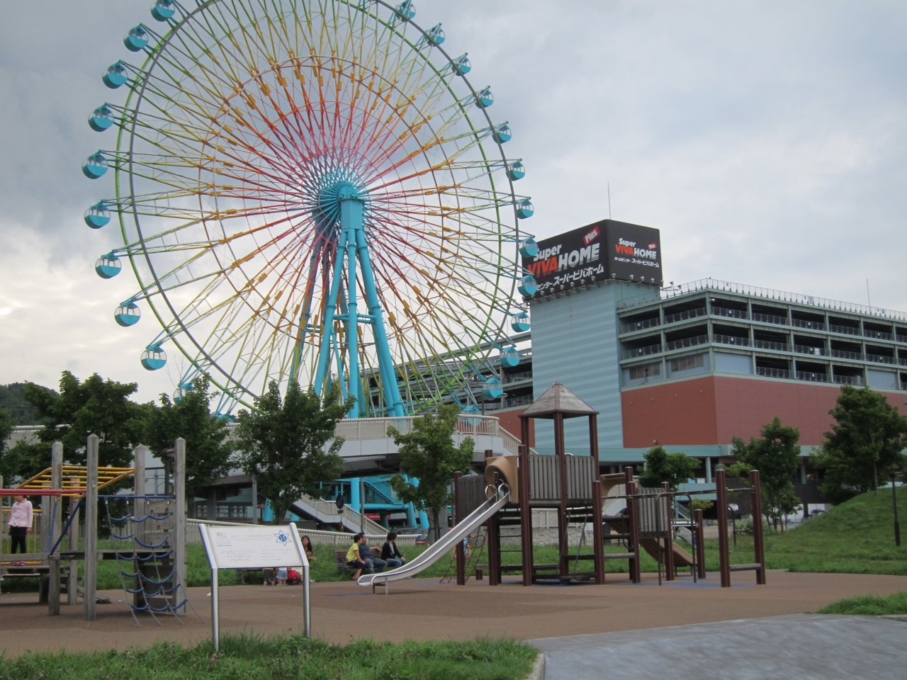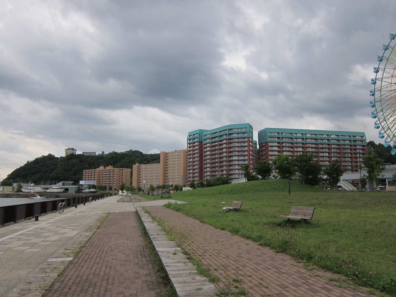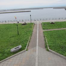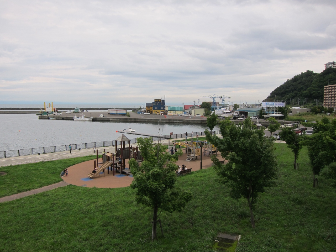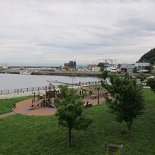 JR小樽築港駅の改札を出て、跨線橋を海の方へ突き抜けた先にあります。海岸沿いの通りも歩道橋で越えて、駅直結でアクセスがよいです。子供用遊具とベンチがあり、そのほか草原になっています。無料の駐車場も隣接しています。公園は小樽港の端の方ですが、マリーナなどが見渡せます。観覧車(レインボークルーザー)が目の前なので、夜のライトアップ時(16時~21時)の眺めがよいです。なお観覧車は2013年9月現在、故障で運転を停止しています。公園は、ほか、天気のよい日など、駅を利用した際の休憩にいいと思います。