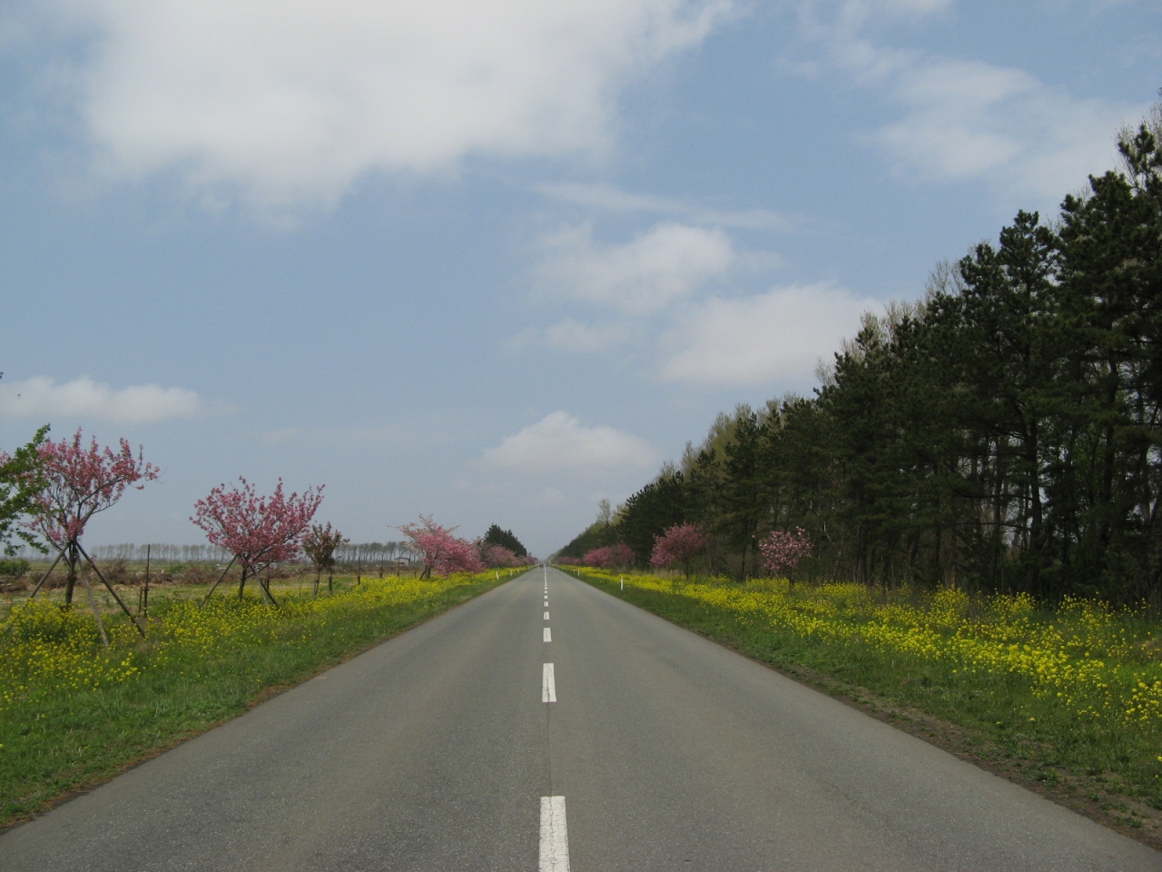 5月のはじめに、県道298号線と県道42号線を走って八郎潟干拓地をほぼ一周しました。日本とは思えないような広い田園風景の中、道路沿いに桜や菜の花が咲く一直線の道路を気持ち良く走りました。