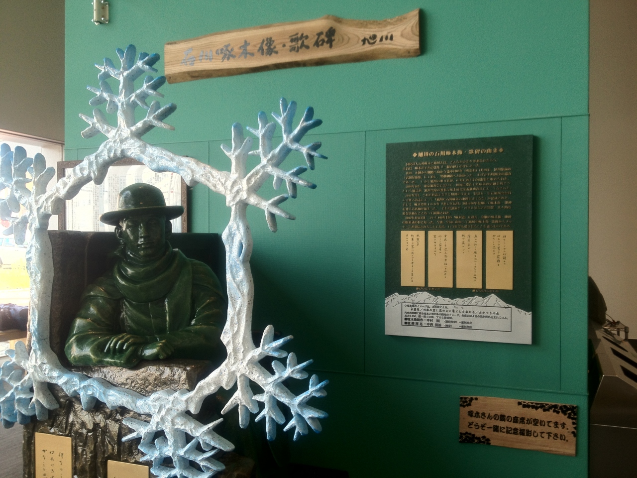 JR旭川駅構内の旭川観光物産情報センターに、没後100周年を記念して建てられました。