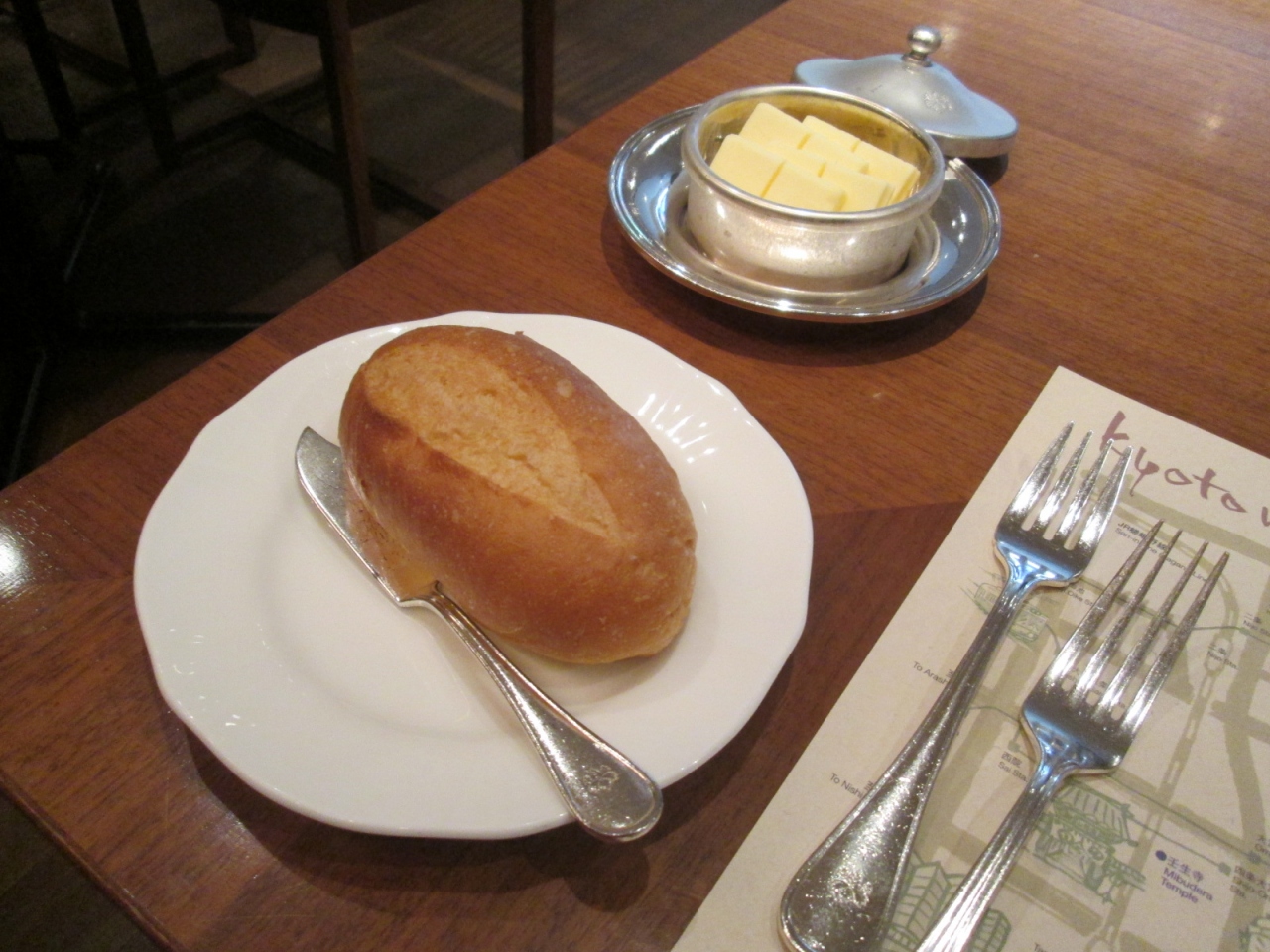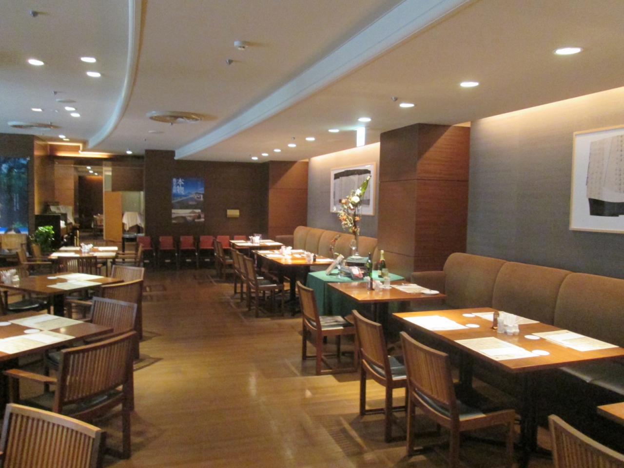 - オープン・スペースのレストランで、さほど高級感はありませんが、フローリングの床・ガラス窓向こうの中庭が気持ち良い時間を演出してくれます