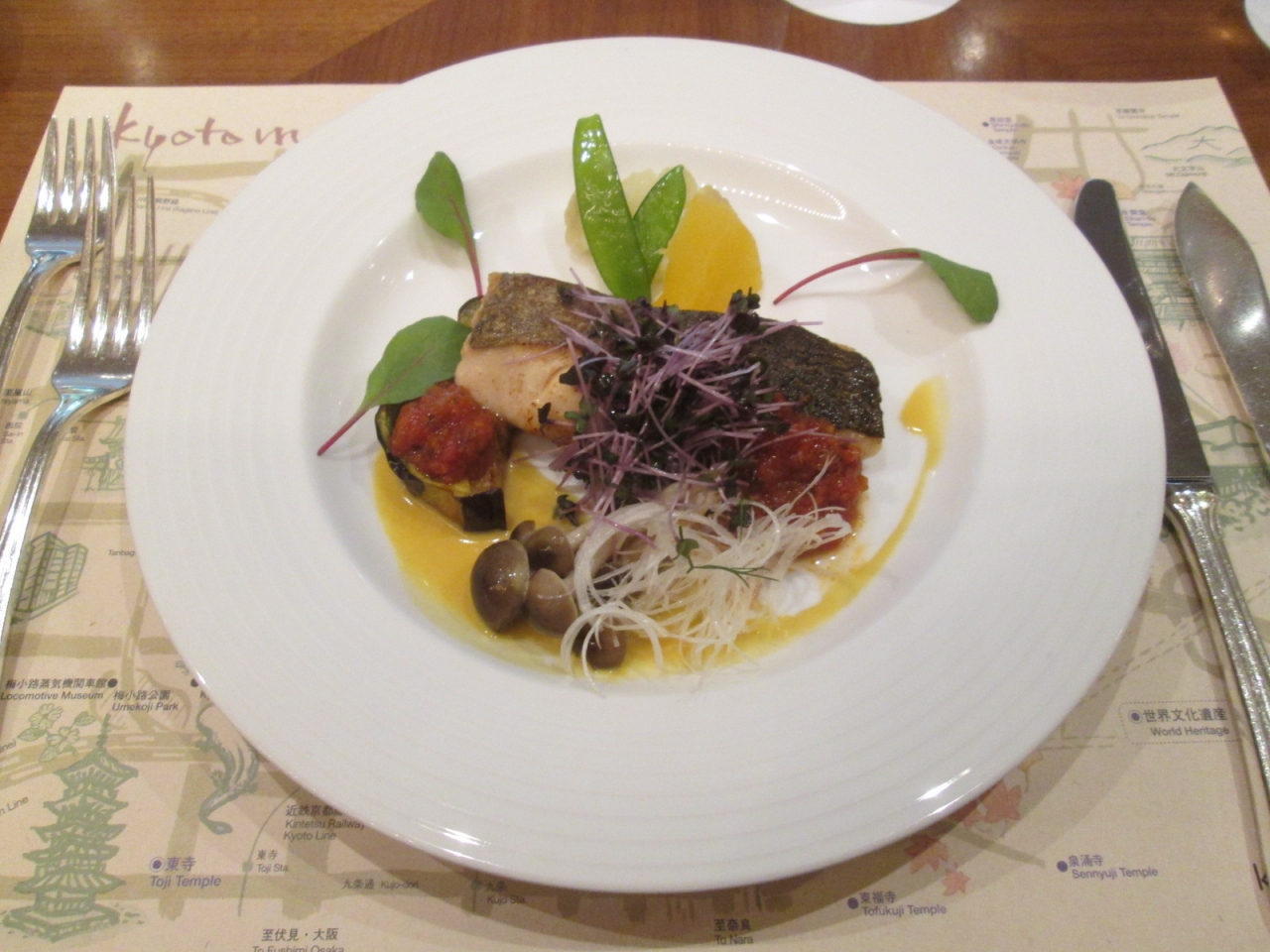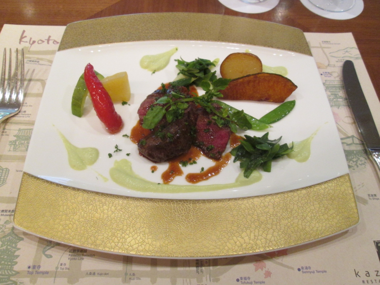 「京都要求ホテル」に初めて訪れました。車寄せから館内に入ると、そこはウェルカム・ロビー。目の前のエスカレーターで地階に降りるとメイン・ロビーという、少し変わったオペレーションのホテルです。メイン・ロビー内にはモダンな和風の中庭が設えられており、その一角に朝食会場としても用いられるレストラン「kazahana」があります。オープン・スペースの店内に分かり易い高級感はありませんが、床は渋めの色のフローリング、木製のテーブルも同様の色使いで落ち着いた雰囲気です。店内の照明は抑えめですが、ガラス窓の向こうに設えられた中庭の景色を際立たせる工夫だと思います。このレストランを予約したのは、”シェフの饗宴”という京都駅周辺ホテルの共同企画メニューを試して見たかったからです。ちなみに今回のテーマは”夏の京”。ランチタイムでの利用だったのですが、ディナータイムのコース料理も注文できるということ、せっかくですからディナー・コースを予約して向いました。料理は…さすが料理に定評の高い東急ホテル、「さすが」と思わせるものでしたし、”夏の京”というテーマ通り、添えられる野菜は万願寺唐辛子などの京野菜、ソースも九条葱など京野菜が用いられており、新鮮な美味しさを楽しむことができました。。料金はスープ・魚料理・肉料理・コーヒーあるいは紅茶のコースで3000円(税・サービス料込)と、お得な料金だと思います。さらにweb予約でワインなどワンドリンク無料ですし、コースのオプションで付けられるグラスのワインも300円と、客側の立場に立った良い工夫もありました。スタッフの接客も丁寧、皆さん優しい笑顔で対応されており、気持ち良い食事の時間を演出して下さいました。ただ少し残念なこともあります。500円の追加で付けられる創作デザートの存在をうっかり忘れ、食べ忘れてしまいました。予め尋ねてくだされば注文したのですが…。また添えられるパンが1種類だけだったのも、少し寂しかったな…。しかし総合的に考えれは、費用対効果に優れた良いレストランだと思います。間違いなく、再び利用すると思います。