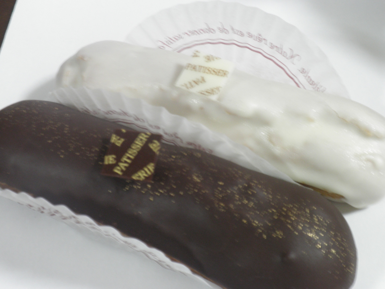 チョコレートエクレアとホワイトチョコレートエクレア 各¥263です