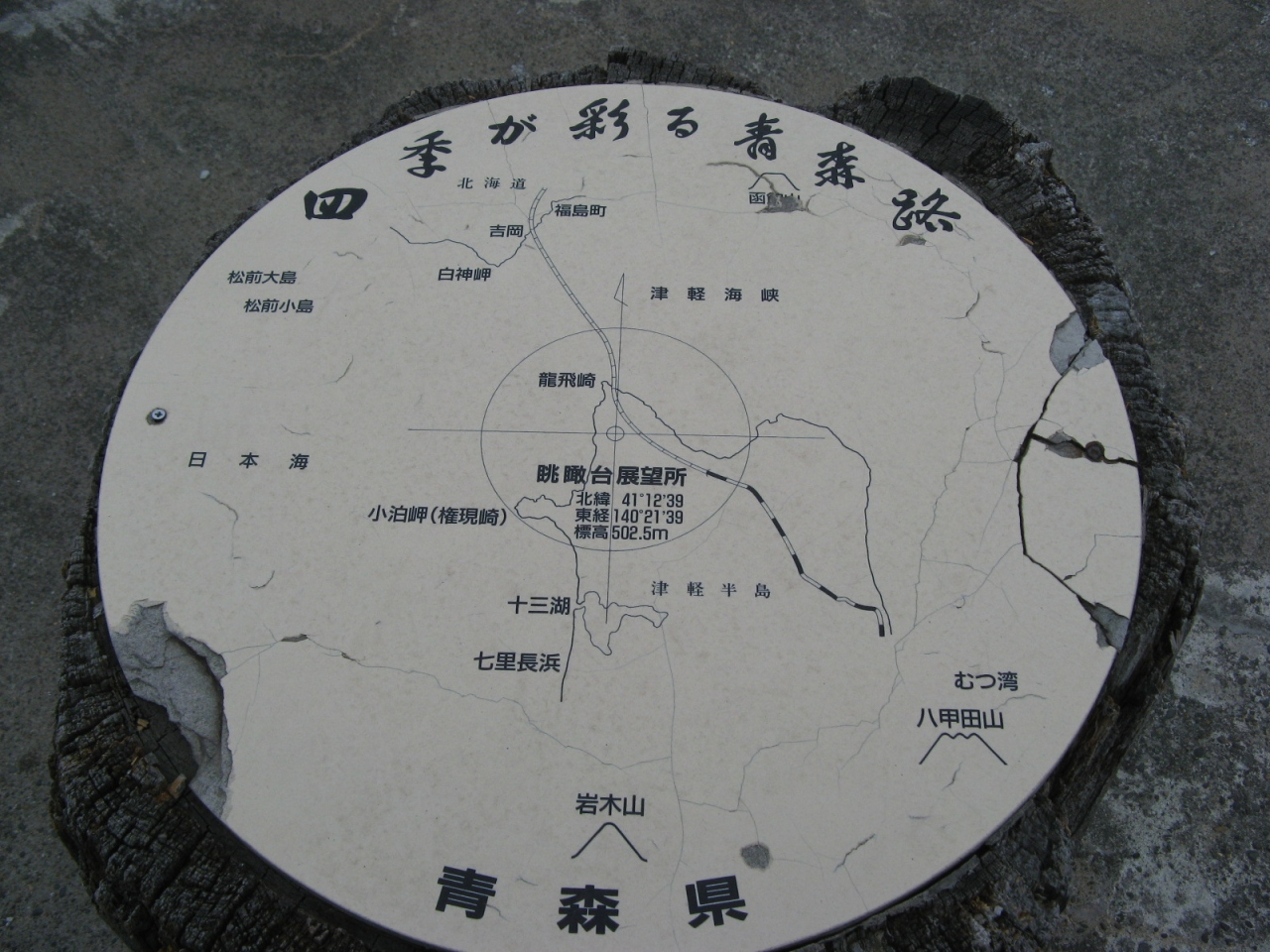 天気の良い日は、眼下に竜飛崎、権現崎、岩木山、十三湖、八甲田の山並み、陸奥湾など360度の大パノラマ景観を楽しむことが出来るそうですが、訪れたときは残念ながら霧が深く、絶景を望むことが出来ませんでした。