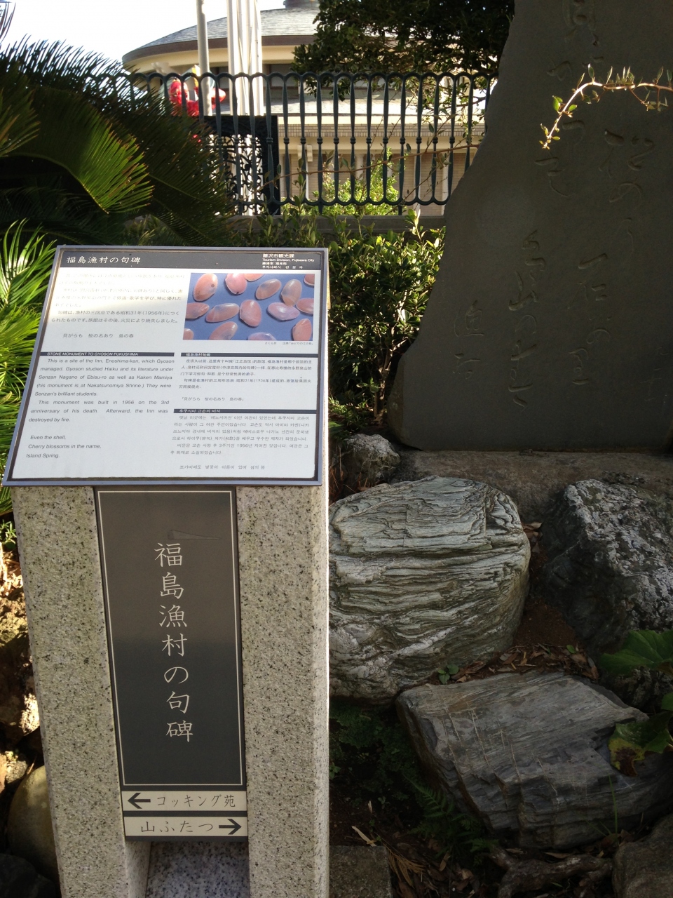 「貝がらも 桜の名のあり 島の春」と言う句が記された大きな石で、