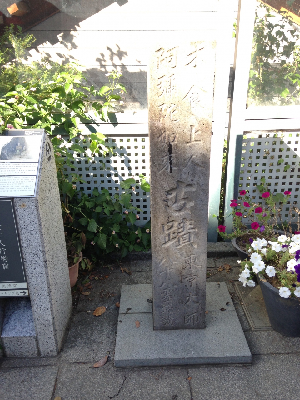 江島神社奥津宮へ向かう途中にある石柱と案内板です。