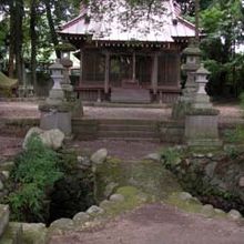 森の温泉に戻って、バスで来た道を戻るとすぐに平地に出て、水郡線の踏切を渡って久慈川に沿う旧道を進むと集落のはずれに大鈴神社があり寄っていきます。参道を進むと水路から引いた池があり、橋で拝殿に進むようになっていて、小さいながら面白い造りの神社でした。