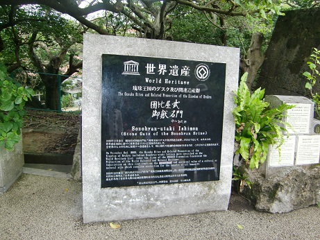 「そのひゃんうたきいしもん」と読みます。読める人っているのでしょうか? ただ、ここは世界遺産に登録されているくらいの重要な場所だそうで知りませんでした。琉球石灰岩で造られた建造物で、国王が外出するときに安全祈願をした礼拝所でそうです。どうしても守礼門に目が行ってしまうのですが、世界遺産の記念碑が横にあるとそのように見てしまいました。