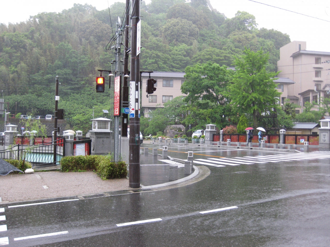 有馬温泉街に行き付近を散策しました。太閤橋は有馬温泉街の中心地にある交差点にありました。有馬温泉駅のすぐ近くです。向かいには太閤豊臣秀吉の銅像がありました。太閤橋自体は川にかかる普通の橋で道路でした。