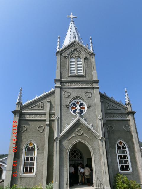 天草下田へ一泊2日の旅へ行ってきました。最初に天草下島南部の崎津天主堂を見ましたが今まで見た事がない、のんびりした雰囲気で天主堂にたどり着くまでの海が非常にきれいです。隠れキリシタンの地であるのは言うまでもありませんが、何とも言いようのないロケーションです。海を左に見ながら車を走らせると天主堂が見えてきます。実は海沿いの道から天主堂をみたポイントが最高の撮影ポイントだった事を後で気づきました。2台ぐらいしかない駐車場へ車を止め徒歩ですぐです。もちろん入場無料。但し館内は、撮影禁止。敷地内には、この地にキリスト教を布教した神父の記念碑がありました。天主堂はこじんまりしていますが蒼い海と空に溶け込んでいます。僕の中では一番印象に残る天主堂です。