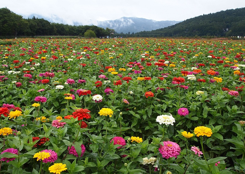 公園の到着する直前、道路から、百日草が辺り一面に広がっていて、