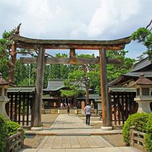 米沢観光の中心となるであろう、米沢城跡の中心に建っている神社で、もちろん祭神は上杉氏です。城跡に作られていますので、現在の本殿の歴史としてはそこまで古いものではないと思いますが、木造の鳥居は風格があり、いかにも有名な上杉氏を祀る神社という重厚さにあふれています。