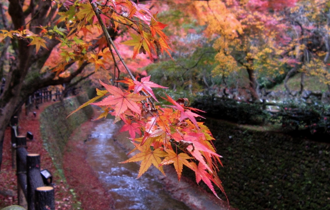 史跡の御土居(土塁)と紙屋川を覆う250本の楓の紅葉を同時に楽しめ、
