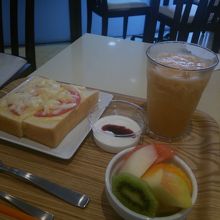 こちらのパンはフルーツに合うように調合した特注のパンだと昔聞いたことがあります。なのでただのトーストでも美味しい!