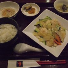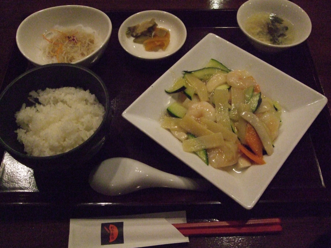 夜も利用したことがありますが今回はランチでの利用です。店内はまったくかしこまった感じがなく、カジュアルな感じ。装飾が不思議(岩みたいなのがあったり)なせいでしょうか。その分ビジネスマンのランチにも気軽に利用できそうです。750円の日替わりランチをいただきましたが、そんなにお得感もなく。少しのスープと少しの小皿が1つ、メインとご飯とさびしい内容。100円プラスで飲み物が付きます。