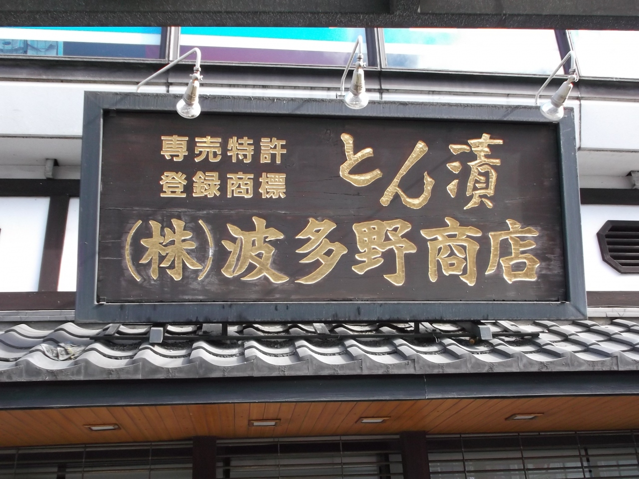 本厚木駅駅前、大きな看板が目立ちます。「とん漬け・波多野商店」。