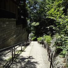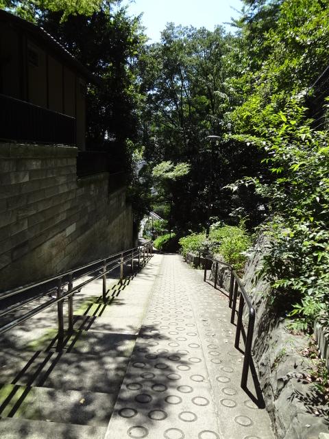 目白通り沿いにある講談社野間記念館の白い塀に沿って曲がっていくと幅の狭い坂があります。神田川まで繋がっている道ですが、坂の両側には椿山荘の庭園、蕉雨園、永青文庫、芭蕉庵などがあります。坂が険しく、自分の胸を突くよう にしなければ上れないことから、急な坂には江戸の人々が よくつけた名前だそうです。