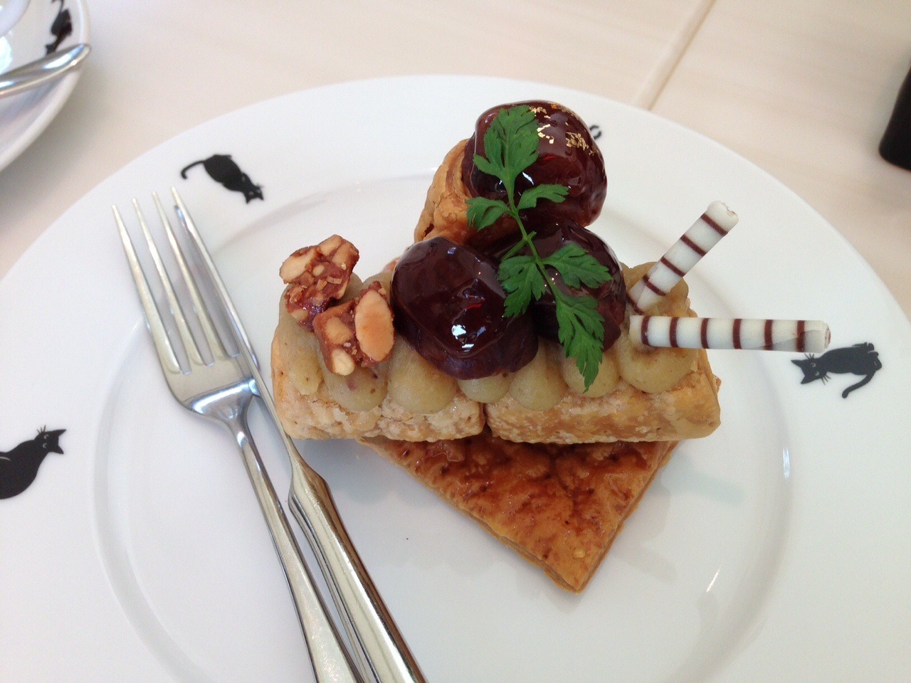 フランス語で「シャ」は猫「ノワール」は黒で、フランス語でヨーロッパでは幸福を呼ぶと言われている黒猫がお店のモチーフになっているよう。