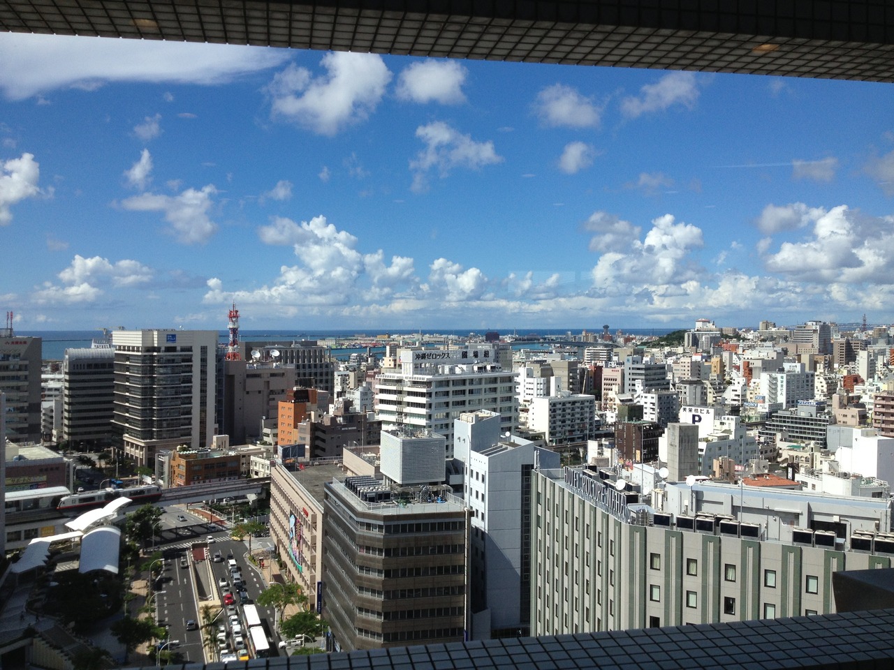 沖縄県庁最上階からの眺めです。14階に展望室があり、那覇市の中心部を一望できます。自由に入れます。隣りの喫茶店でひと休みもいいと思います。この日は、天気が良かったので、慶良間列島がキレイに見えました!