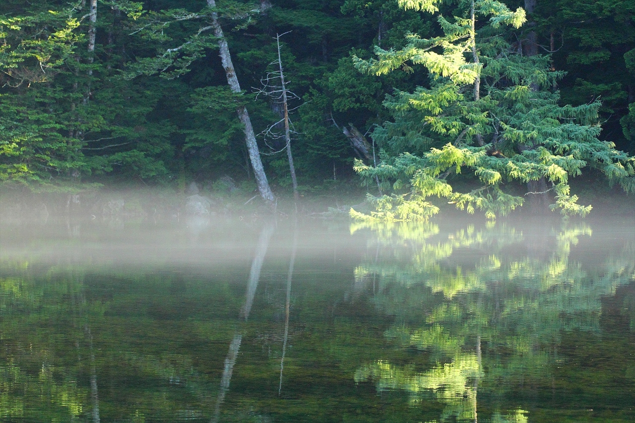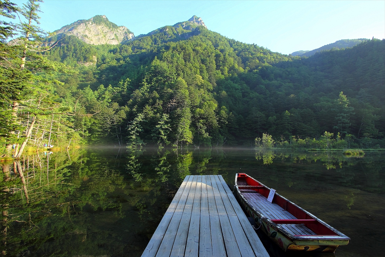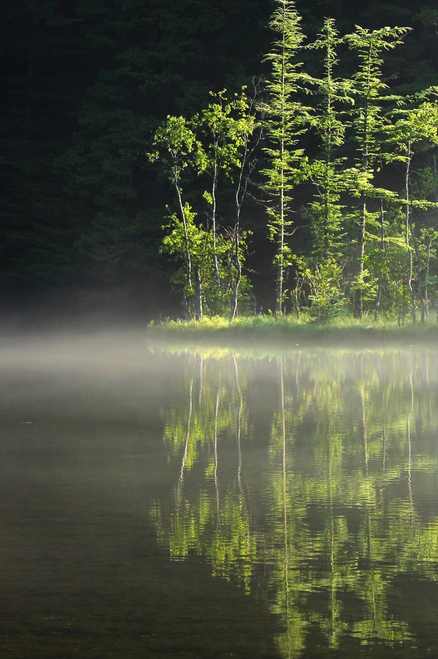 早朝に行くと朝もやが立ちこむ幻想的な明神池が見られるかもしれません。