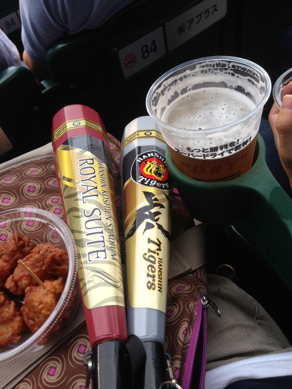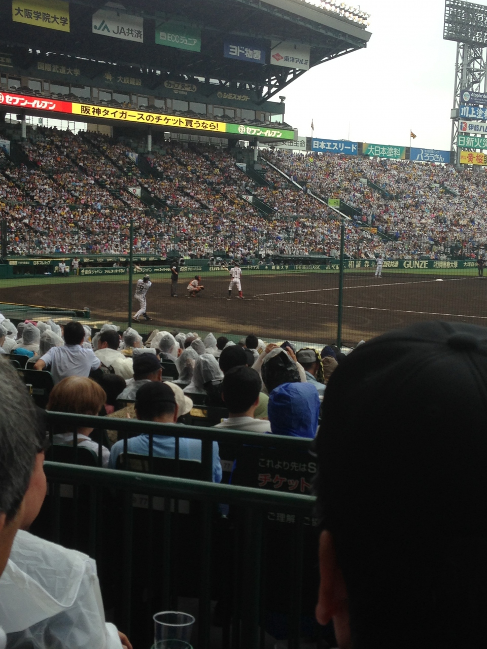 伝統の阪神巨人戦を、一塁側アイビーシート3段目という前方の席で観戦することが出来ました。途中雨が降ってやや辛い時間帯もありましたが、それを上回る迫力と感動を味わうことができました。席も思ったより広くて、さほど窮屈な思いもしませんでした。