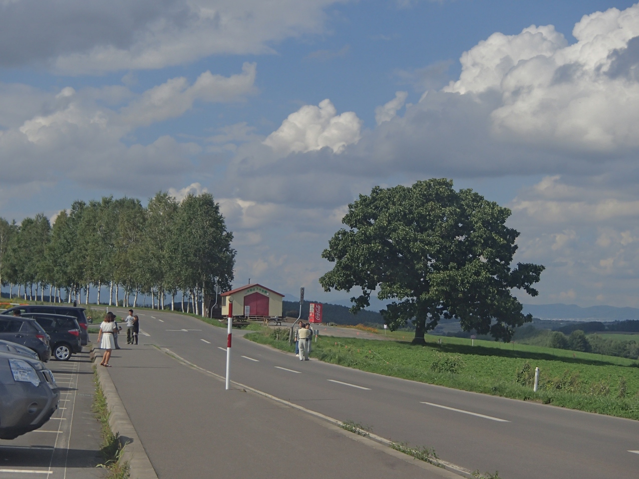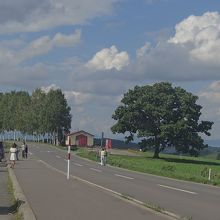 セブンスターの木は、かしわの木だそうです。周囲は畑が連れなりパッチワークの丘が広がっています。