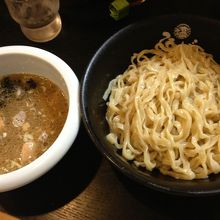 つけ麺は平打ち麺、スープにはカニ?入りで美味しいです。