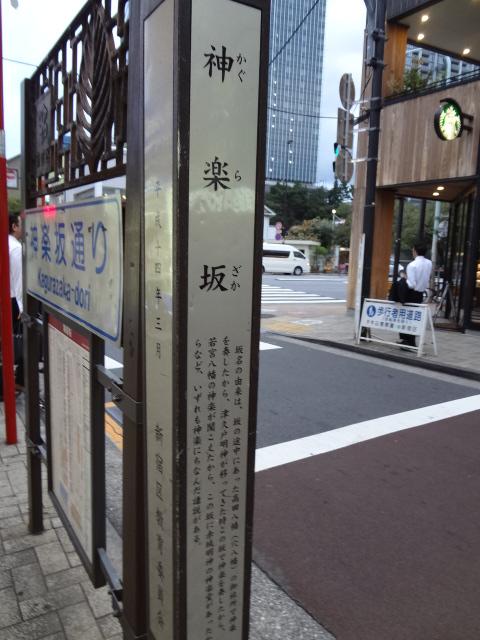 飯田橋駅からなだらかな坂の続く、神楽坂。中心の通りは大変賑わっていました。夜、少し奥に入ると、黒板塀があったり、料亭があったり、神楽坂の雰囲気を楽しむことができます。神楽坂には現在5軒の料亭と約25人の芸者さんがいて、この5軒だけが芸者さんを呼んで飲食ができる場所となっているそうです。