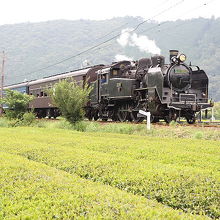 また、夏休みは子供向けに、顔が付いた青いSLも走っています。