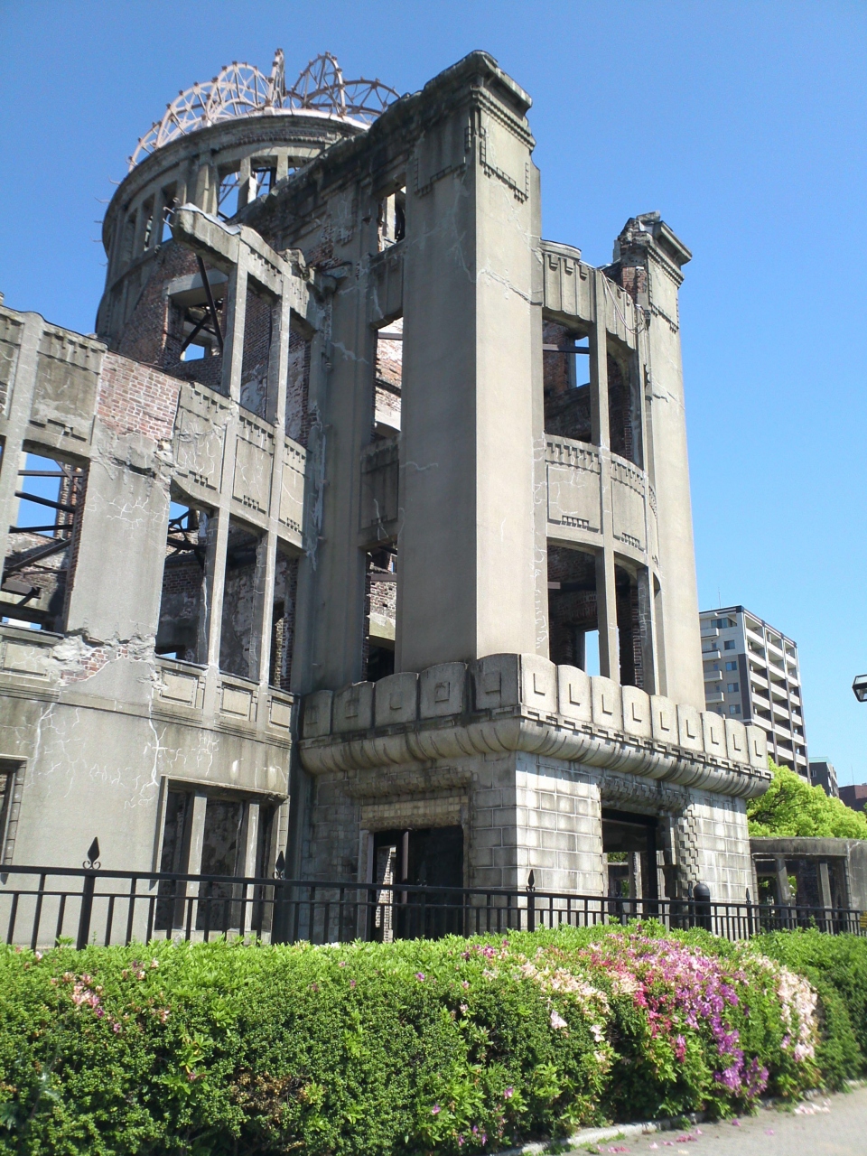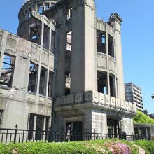 原爆資料館にあった爆弾くらった直後の周辺の写真を見たのですが、このドームとわずかなビル以外は見事に更地になっていました。