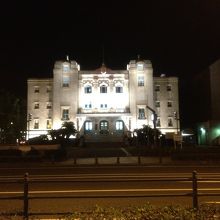 ライトアップされていて、白い建物が夜の闇に映えます。